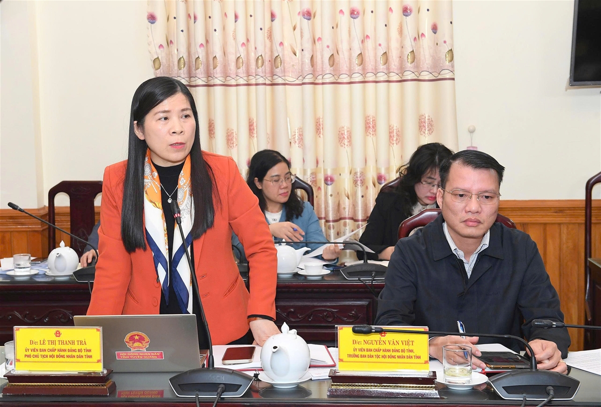 Đồng chí Phó Chủ tịch HĐND tỉnh Lê Thị Thanh Trà phát biểu ý kiến tại phiên họp.