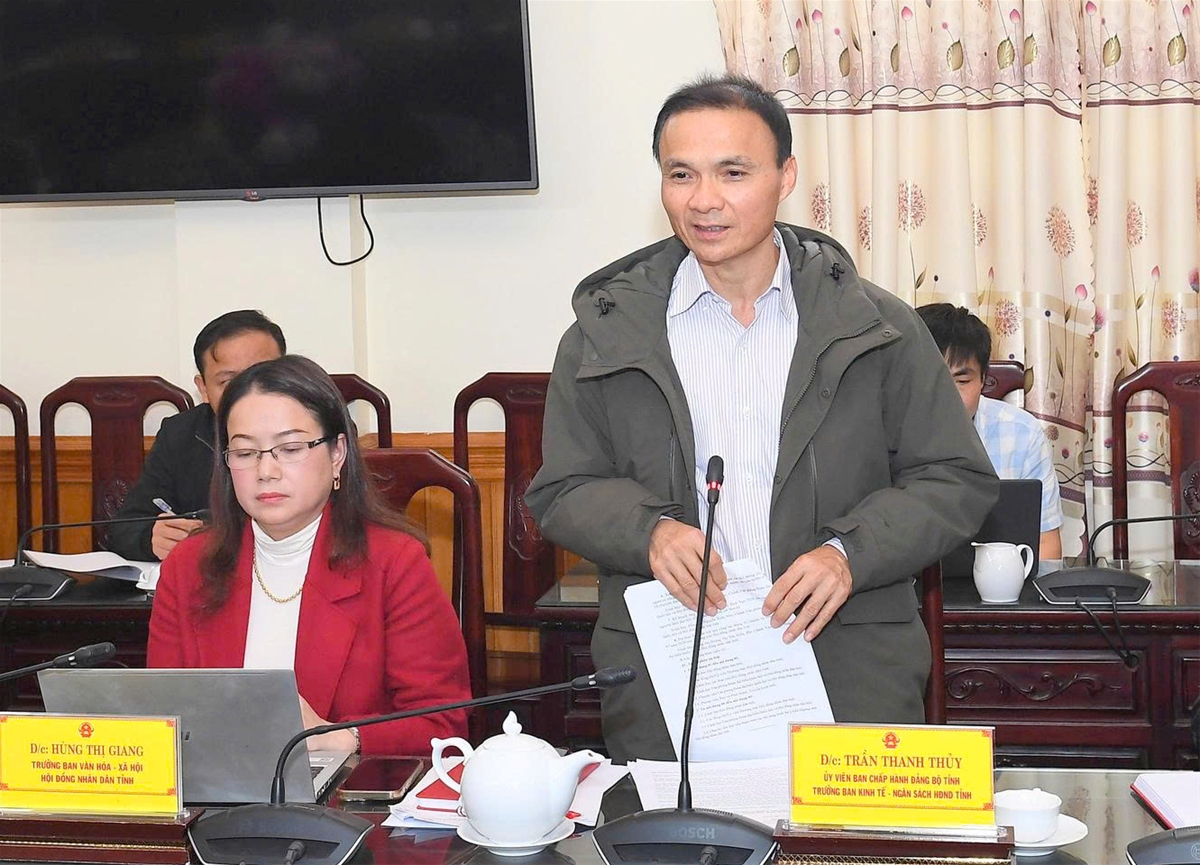 Trưởng Ban Kinh tế - Ngân sách HĐND tỉnh Trần Thanh Thủy phát biểu ý kiến.