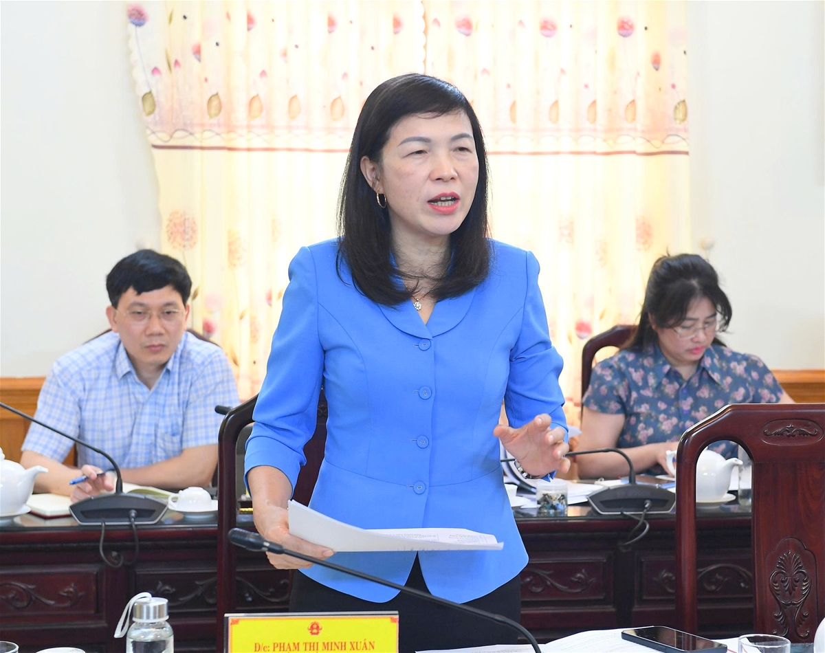 Đồng chí Phó Chủ tịch HĐND tỉnh Phạm Thị Minh Xuân phát biểu tại phiên họp.