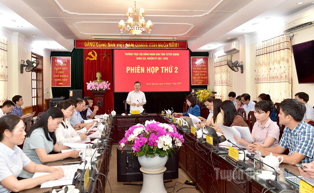 Phiên họp tập trung thảo luận, cho ý kiến vào các nội dung về: dự kiến chương trình kỳ họp chuyên đề lần thứ nhất HĐND tỉnh, khóa XIX; Dự thảo Quyết định về việc phân công nhiệm vụ, quyền hạn của Chủ tịch, Phó Chủ tịch HĐND, các thành viên của Thường trực HĐND tỉnh Tuyên Quang, nhiệm kỳ 2021 - 2026; về việc đề nghị Thường trực HĐND tỉnh cho chủ trương xây dựng dự thảo Nghị quyết Quy định chế độ chi tiêu, bảo đảm hoạt động của HĐND các cấp trên địa bàn tỉnh; Quy định phân cấp nguồn thu ngân sách nhà nước, nhiệm vụ chi ngân sách địa phương và tỉ lệ phần trăm phân chia các khoản thu giữa ngân sách cấp tỉnh và ngân sách cấp xã trên địa bàn tỉnh năm 2025 theo trình tự, thủ tục rút gọn; dự thảo quyết định của Thường trực HĐND tỉnh về việc quy định vị trí, chức năng, nhiệm vụ, quyền hạn, cơ cấu tổ chức, biên chế, kinh phí, trụ sở làm việc và chế độ làm việc của Văn phòng Đoàn ĐBQH và HĐND tỉnh Tuyên Quang và nhiều nội dung khác.