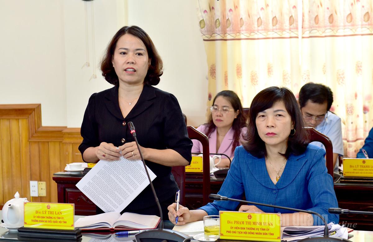 Đồng chí Trưởng Đoàn ĐBQH tỉnh Lý Thị Lan phát biểu tại phiên họp.