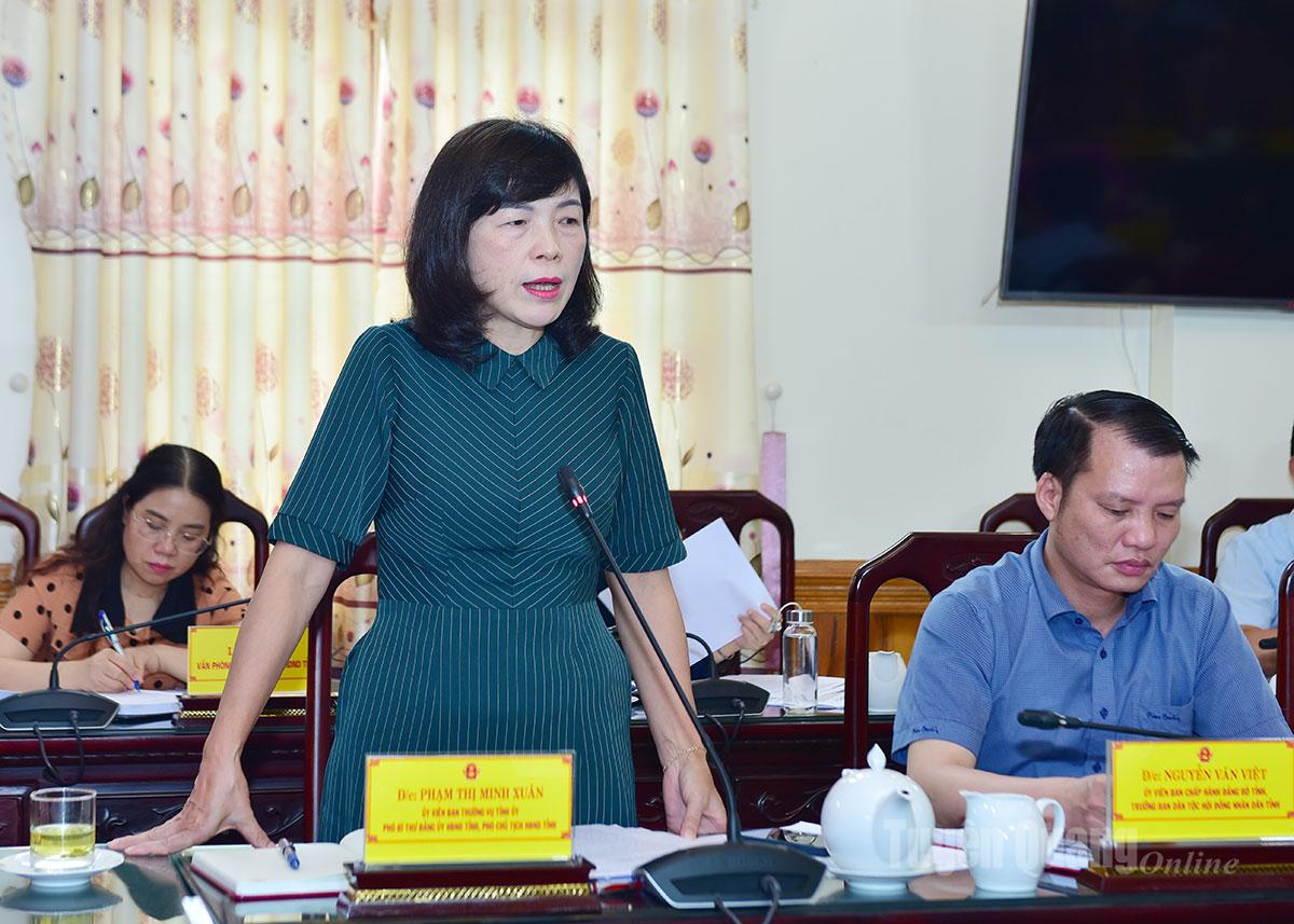 Đồng chí Phó Chủ tịch HĐND tỉnh Phạm Thị Minh Xuân phát biểu tại phiên họp.
