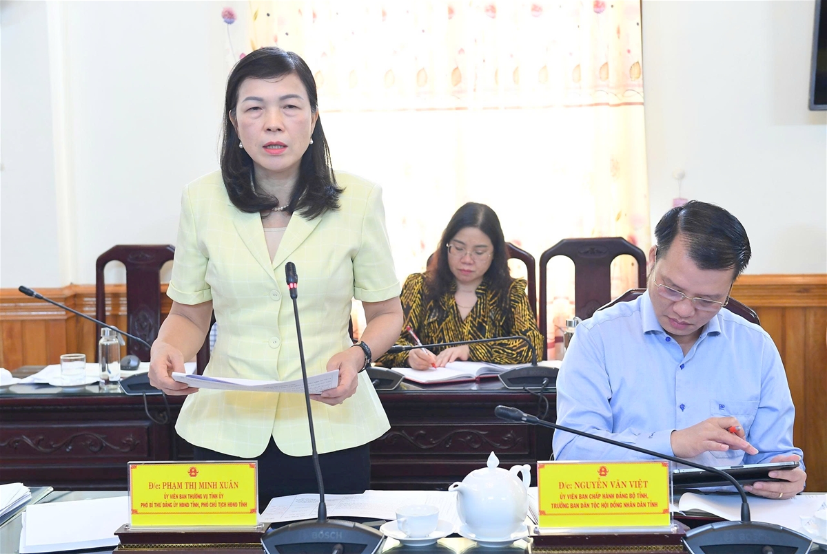 Phó Chủ tịch HĐND tỉnh Phạm Thị Minh Xuân phát biểu tại phiên họp.