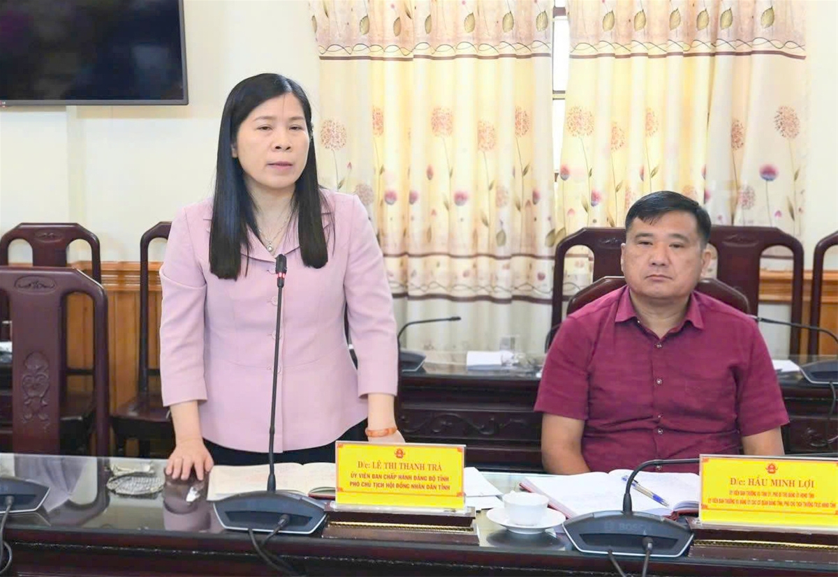 Phó Chủ tịch HĐND tỉnh Lê Thị Thanh Trà phát biểu tại phiên họp.