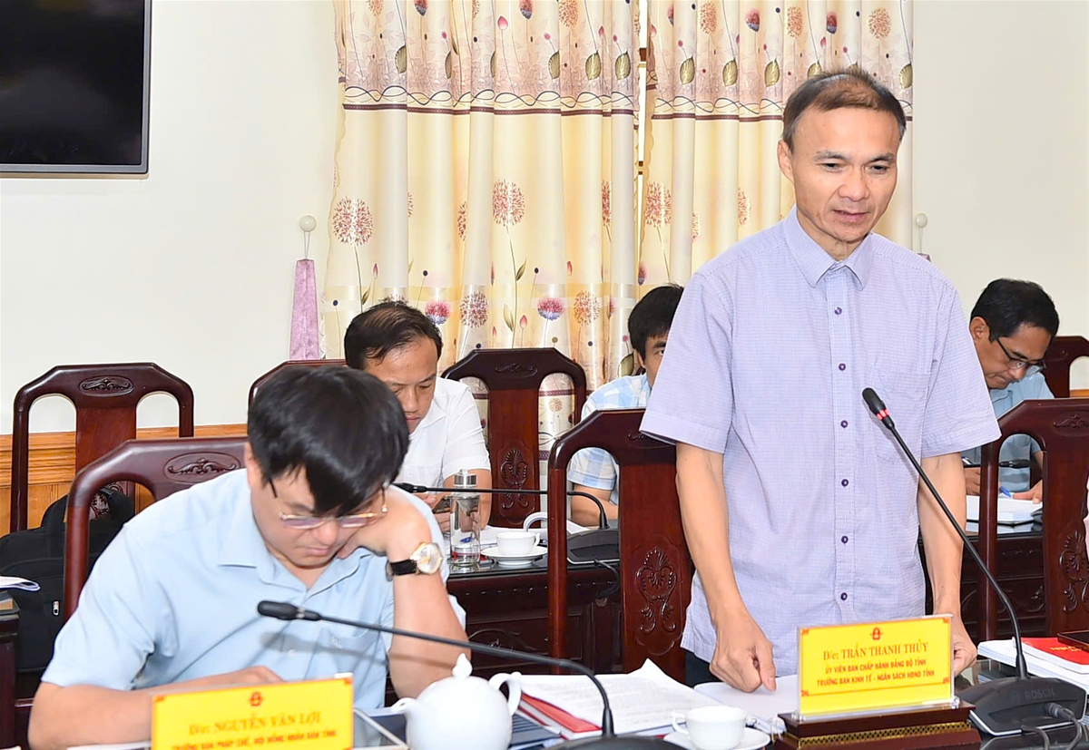 Đồng chí Trần Thanh Thủy, Trưởng Ban Kinh tế - Ngân sách HĐND tỉnh phát biểu ý kiến tại phiên họp.