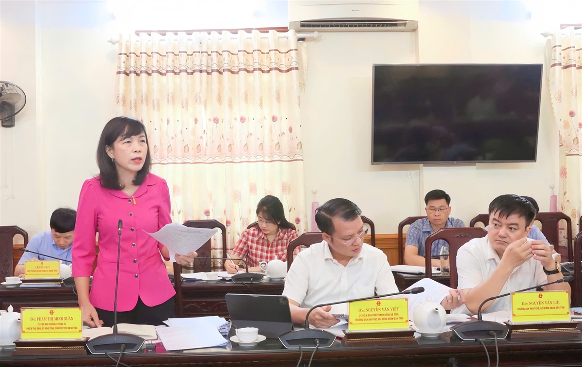 Đồng chí Phạm Thị Minh Xuân, Ủy viên Ban Thường vụ Tỉnh ủy, Phó Chủ tịch HĐND tỉnh phát biểu ý kiến tại phiên họp.