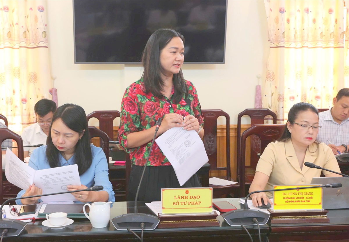 Lãnh đạo Sở Tư pháp phát biểu ý kiến tại phiên họp.