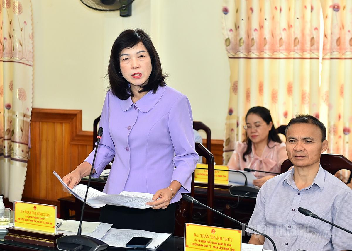 Đồng chí Phạm Thị Minh Xuân, Phó Chủ tịch HĐND tỉnh phát biểu tại phiên họp.