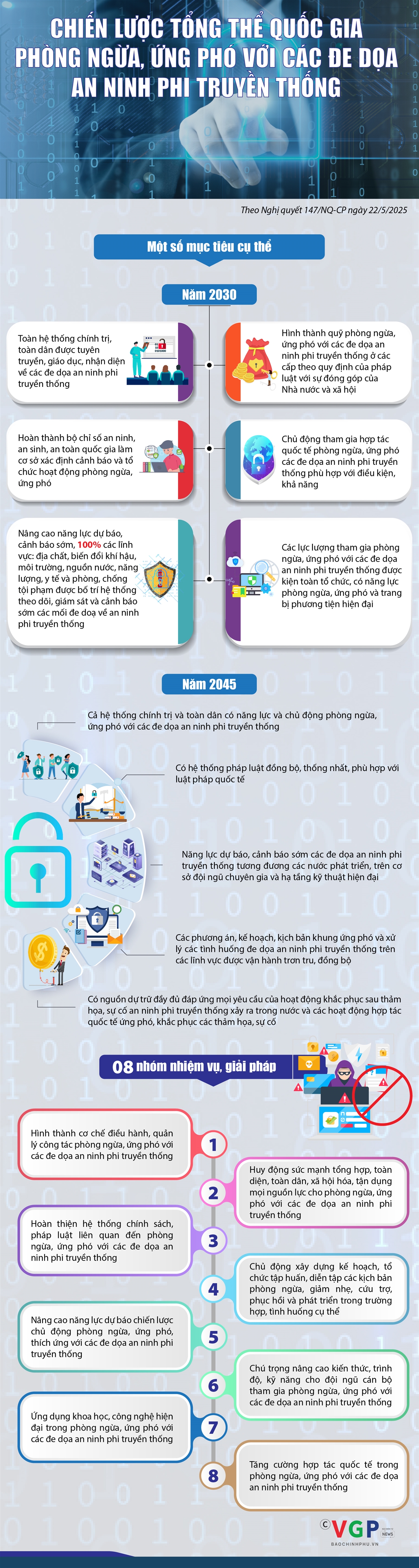 Chính phủ vừa có Nghị quyết 147/NQ-CP ngày 22/5/2025 ban hành Chiến lược tổng thể quốc gia phòng ngừa, ứng phó với các đe dọa an ninh phi truyền thống đến năm 2030, tầm nhìn đến năm 2045.