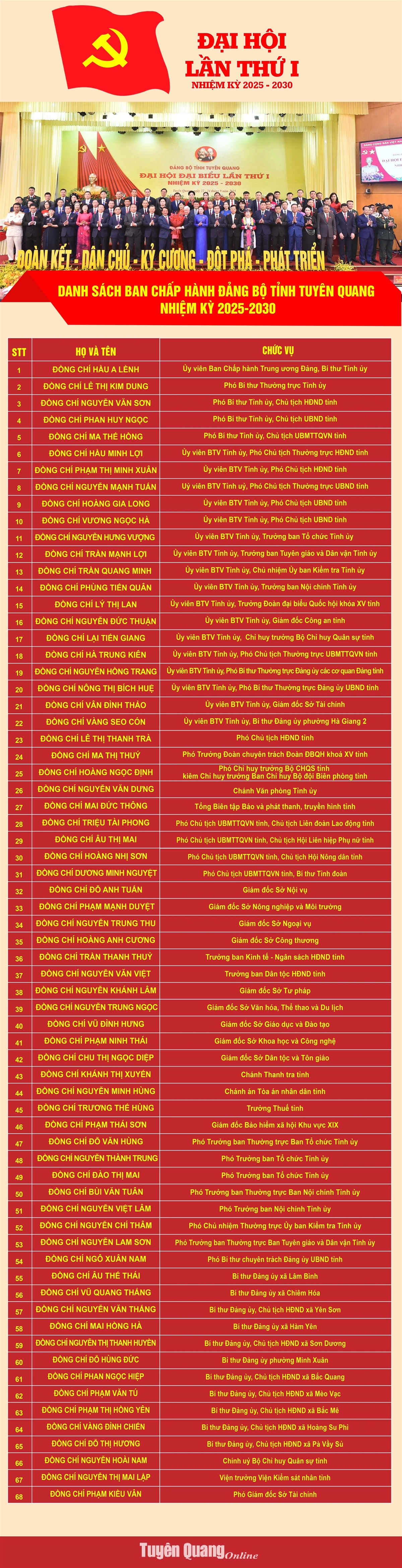 Danh sách Ban Chấp hành Đảng bộ tỉnh Tuyên Quang, nhiệm kỳ 2025 - 2030