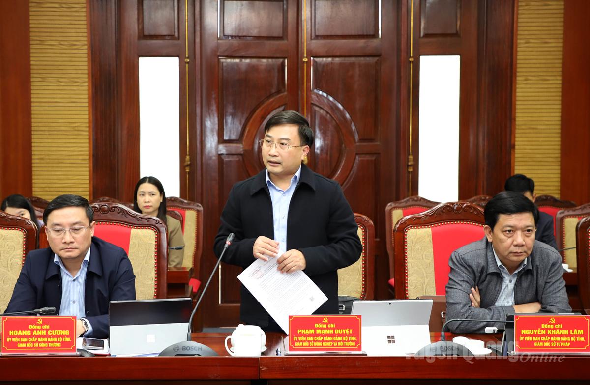 Giám đốc Sở Nông nghiệp và Môi trường Phạm Mạnh Duyệt phát biểu tại buổi làm việc.