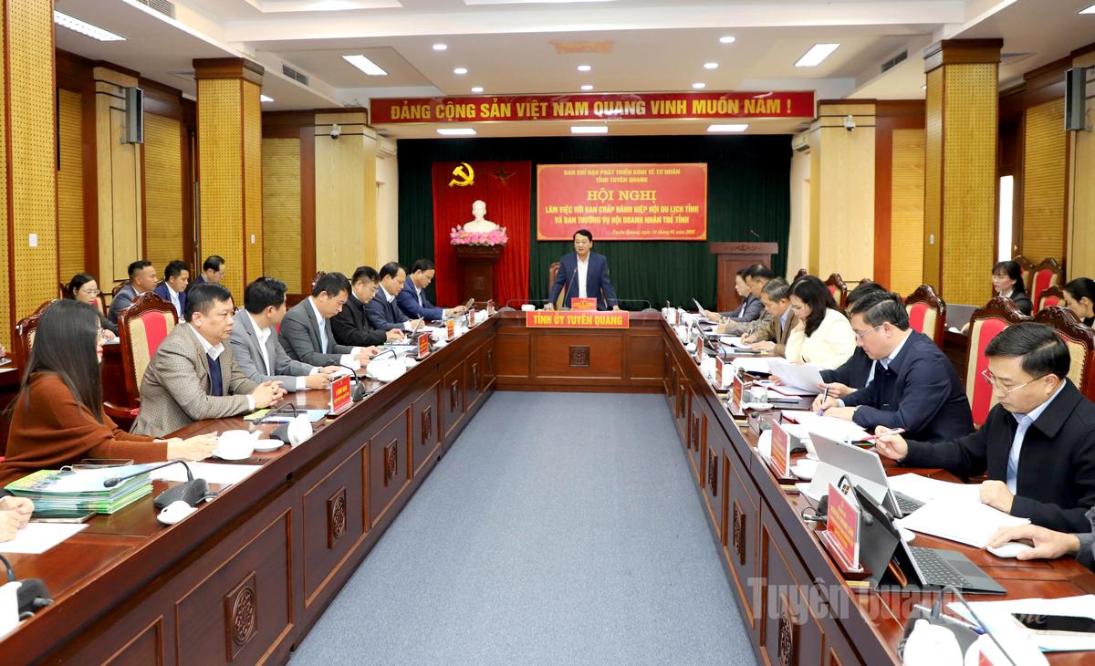 Tại buổi làm việc, lãnh đạo Hiệp hội Du lịch và Hội Doanh nhân trẻ tỉnh đã báo cáo kết quả hoạt động sau khi thực hiện hợp nhất tổ chức. Theo đó, Hiệp hội Du lịch tỉnh hiện có 176 hội viên, hoạt động đa dạng trên các lĩnh vực: lưu trú, lữ hành, dịch vụ, nhà hàng và homestay và dịch vụ du lịch khác. Ngay sau khi kiện toàn, Hiệp hội đã chú trọng phát triển hệ thống chi hội cơ sở, tạo cầu nối vững chắc giữa chính quyền và cộng đồng để thúc đẩy du lịch xanh, du lịch cộng đồng và chuyển đổi số.