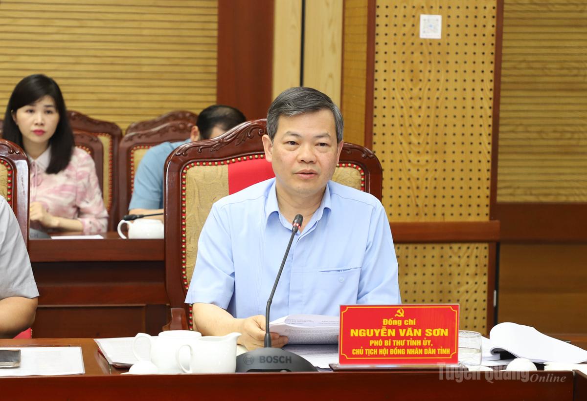 | Đồng chí Phó Bí thư Tỉnh ủy, Chủ tịch HĐND tỉnh Nguyễn Văn Sơn phát biểu tại hội nghị. |