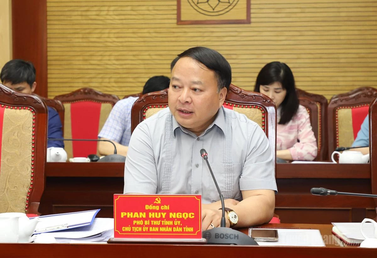 | Đồng chí Phó Bí thư Tỉnh ủy, Chủ tịch UBND tỉnh Phan Huy Ngọc phát biểu tại hội nghị. |