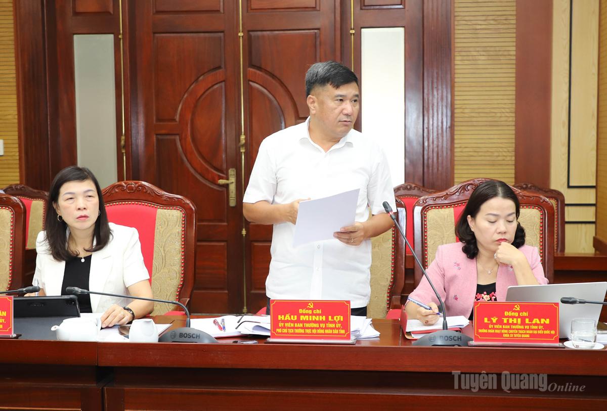 | Đồng chí Phó Chủ tịch Thường trực HĐND tỉnh Hầu Minh Lợi thảo luận tại hội nghị. |