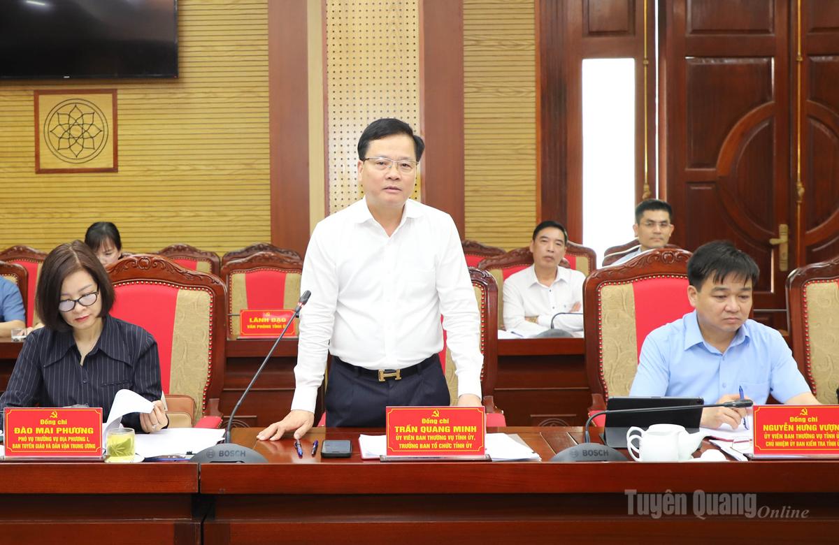 | Đồng chí Trưởng ban Tổ chức Tỉnh ủy Trần Quang Minh thảo luận tại hội nghị. |