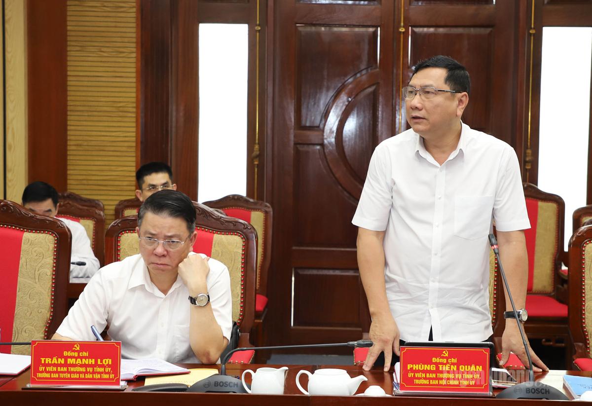 | Đồng chí Trưởng ban Nội chính Tỉnh ủy Phùng Tiến Quang thảo luận tại hội nghị. |