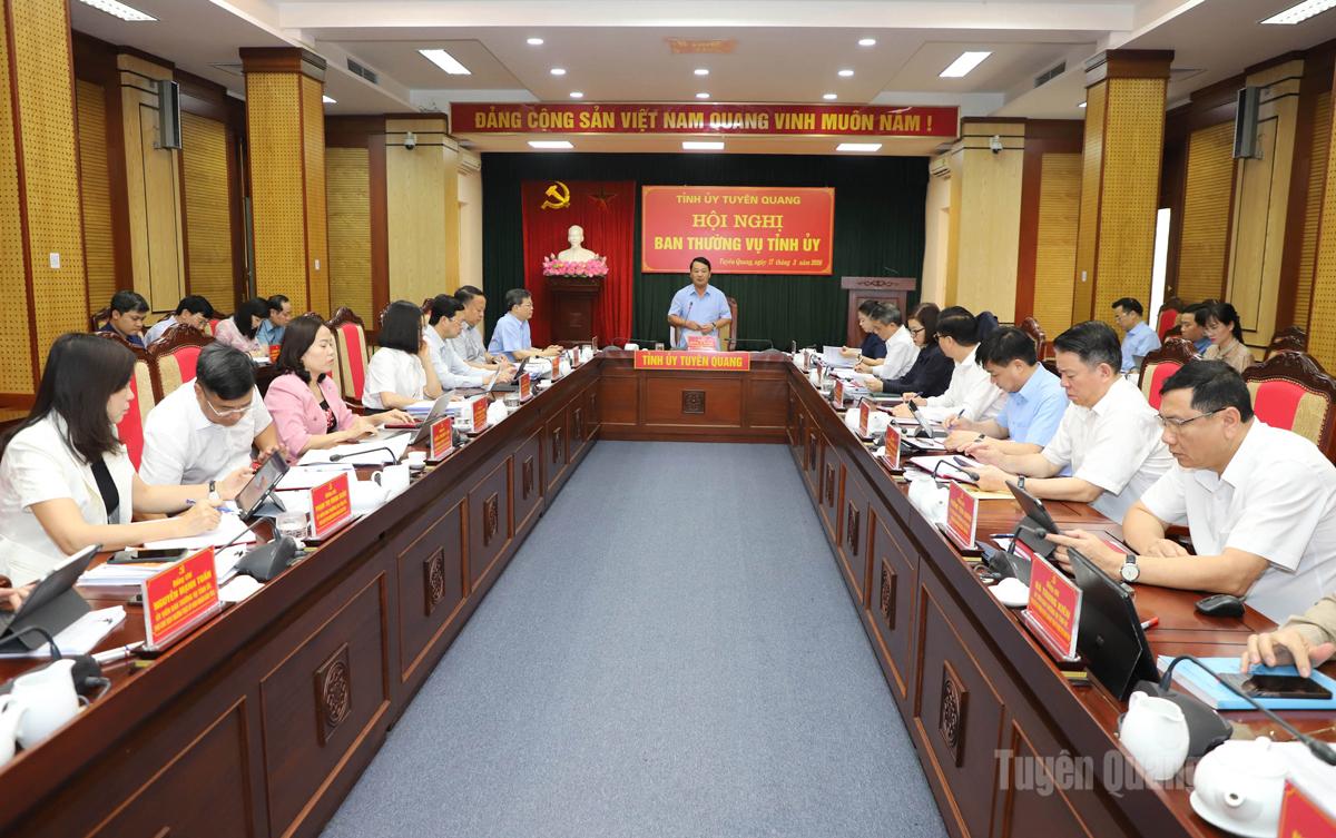 Ban Thường vụ Tỉnh ủy cũng đã xem xét, cho ý kiến vào nội dung Tờ trình số 307 của Đảng uỷ UBND tỉnh xin chủ trương dừng thực hiện các đồ án quy hoạch; Tờ trình 330 về việc ban hành Nghị quyết của Ban Thường vụ Tỉnh ủy về phát triển du lịch trở thành ngành kinh tế mũi nhọn giai đoạn 2026 - 2030, định hướng đến 2035; Tờ trình số 369 về việc xin chủ trương giao bổ sung dự toán chi đầu tư phát triển và kế hoạch đầu tư công vốn ngân sách trung uơng năm 2026 để thực hiện Thông báo kết luận số 81 của Bộ Chính trị về chủ trương đầu tư xây dựng 11 trường học các xã biên giới tỉnh Tuyên Quang; Tờ trình số 370 về việc xin chủ trương giao bổ sung dự toán chi đầu tư phát triển và kế hoạch đầu tư công vốn ngân sách Trung ương năm 2026 để thực hiện Thông báo kết luận số 81 của Bộ Chính trị về chủ trương đầu tư xây dựng trường học các xã biên giới tỉnh Tuyên Quang; Tờ trình số 340 về ban hành Quy định của Ban Chấp hành Đảng bộ tỉnh Tuyên Quang khoá I, nhiệm kỳ 2025-2030 về chủ trương đầu tư, điều chỉnh chủ trương đầu tư và quản lý các nguồn vốn ngân sách nhà nước trên địa bàn tỉnh; một số tờ trình thuộc lĩnh vực quốc phòng, an ninh và đối ngoại…