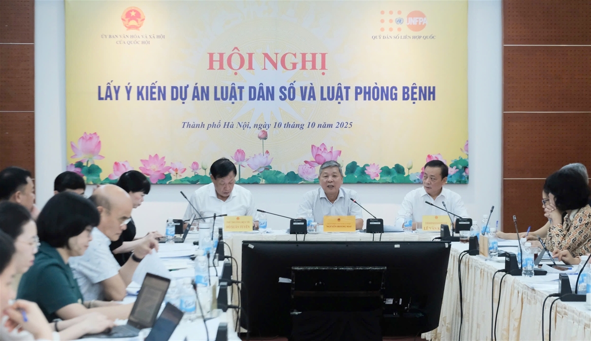 Phát biểu khai mạc, đồng chí Nguyễn Hoàng Mai, Phó Chủ nhiệm Ủy ban Văn hoá và Xã hội của Quốc hội cho biết, 02 dự án Luật Dân số và dự án Luật Phòng bệnh đã được Ủy ban Thường vụ Quốc hội giao cho Ủy ban Văn hoá và Xã hội thực hiện thẩm tra, đã được cho ý kiến tại Phiên họp thứ 50 của Ủy ban Thường vụ Quốc hội. Hội nghị lần này nhằm tiếp tục lấy ý kiến, hoàn thiện các quy định của 02 dự thảo Luật, trình Quốc hội cho ý kiến tại Kỳ họp thứ 10 tới đây.