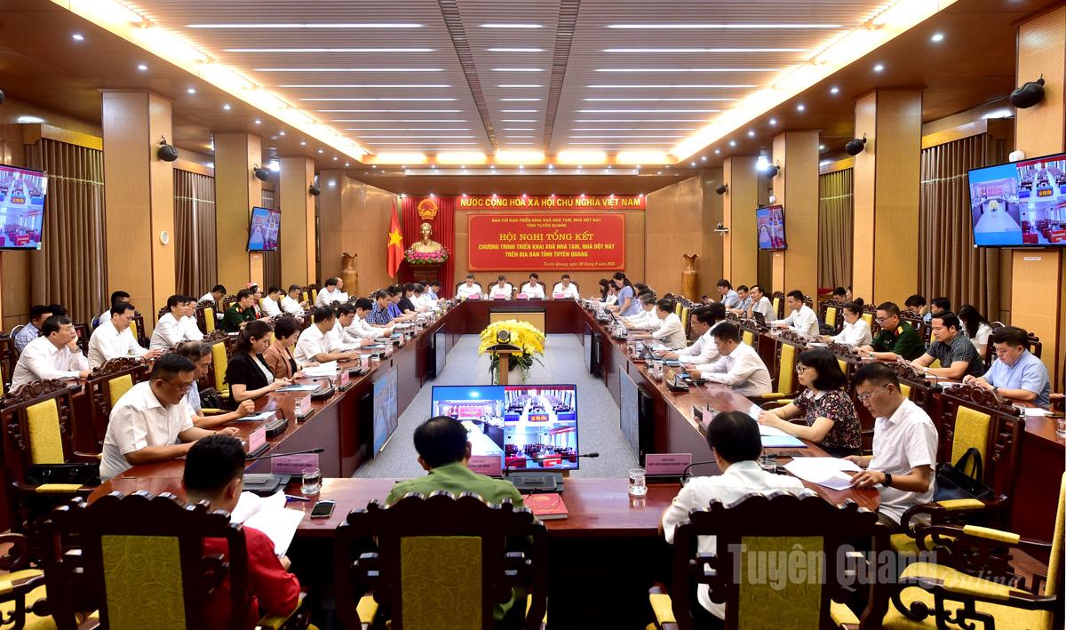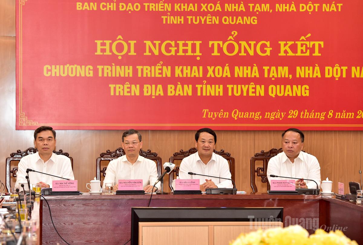 Cùng với đó là tinh thần đoàn kết, thống nhất, kiên quyết không lùi bước trước khó khăn, càng khó khăn càng phải có quyết tâm cao hơn, nỗ lực lớn hơn, hành động quyết liệt, sáng tạo trong lãnh đạo, chỉ đạo và tổ chức thực hiện. Bí thư Tỉnh ủy Hầu A Lềnh khẳng định đây là chương trình hết sức nhân văn do Đảng và Nhà nước phát động. Ở Tuyên Quang, khi triển khai thực hiện chương trình này gặp rất nhiều khó khăn do số lượng nhà xây mới và sửa chữa lớn, địa hình phức tạp, đời sống của người dân còn nhiều khó khăn... Chính trong những khó khăn đó, đã xuất hiện những cách làm sáng tạo, khơi dậy tinh thần đoàn kết, chia sẻ và sự quyết tâm của toàn cộng đồng. Kết quả đạt được của toàn tỉnh là thành tích rất đáng tự hào. Những bài học trong quá trình triển khai thực hiện chương trình sẽ là những kinh nghiệm quý để triển khai thực hiện các phong trào khác của tỉnh. Đồng chí Bí thư Tỉnh ủy nhấn mạnh, hoàn thành chương trình xóa nhà tạm, nhà dột nát là bước tiến lớn, nhưng không dừng lại ở đó. Đây mới chỉ là bước đầu của hành trình hướng tới xóa bỏ hoàn toàn nhà tạm, nhà dột nát và hộ nghèo đa chiều. Điều cốt lõi vẫn là tiếp tục đẩy mạnh sản xuất kinh doanh, tạo việc làm, sinh kế, không ngừng nâng cao chất lượng cuộc sống và đời sống vật chất, tinh thần cho Nhân dân, khuyến khích người dân thoát nghèo bền vững, có cuộc sống thực sự hạnh phúc trong những ngôi nhà mới.