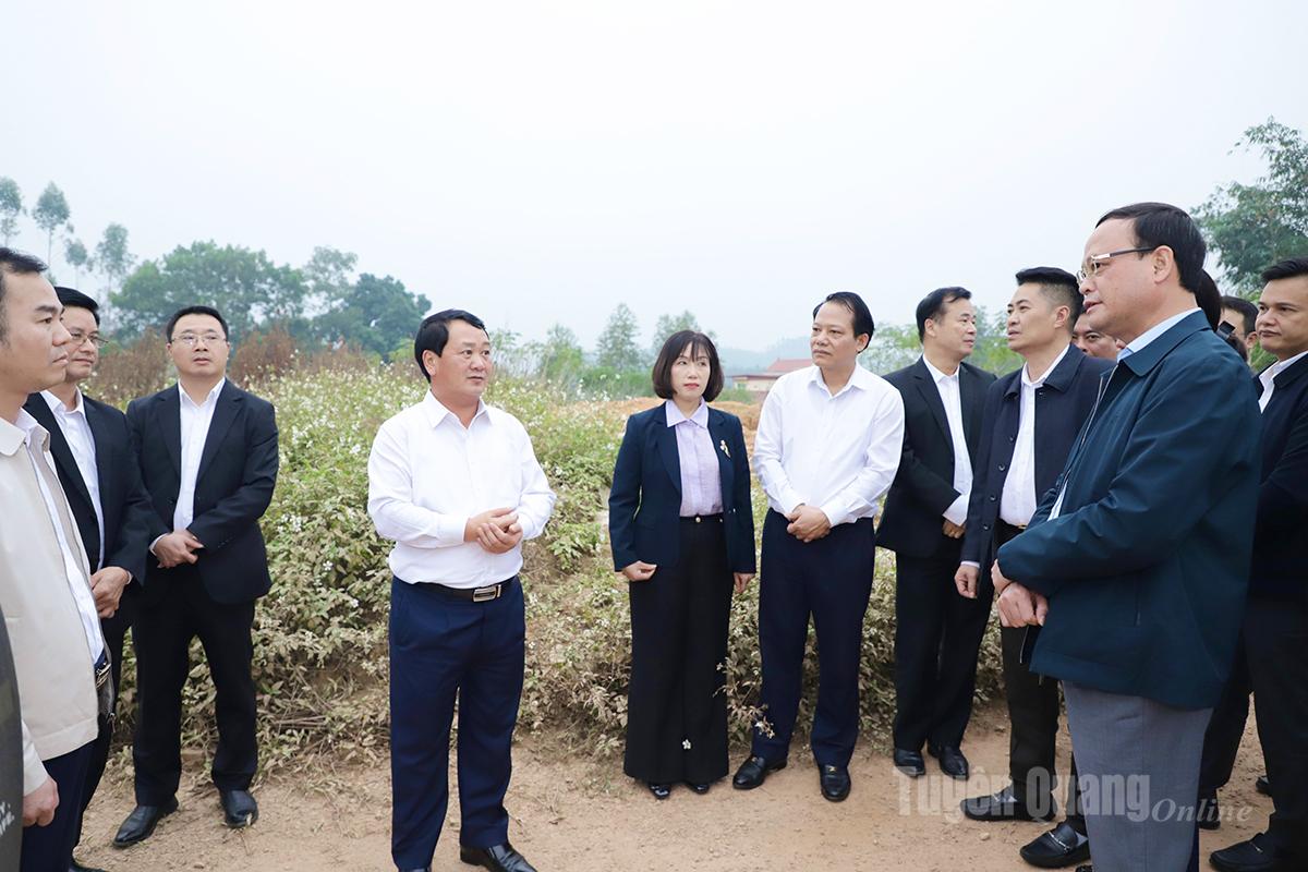 Cùng đi có các đồng chí: Nguyễn Mạnh Tuấn, Ủy viên Ban Thường vụ Tỉnh ủy, Phó Chủ tịch Thường trực UBND tỉnh; Vân Đình Thảo, Ủy viên Ban Thường vụ Tỉnh ủy, Trưởng Ban Quản lý các khu công nghiệp và khu kinh tế tỉnh; lãnh đạo một số sở, ban, ngành của tỉnh và các xã trong vùng quy hoạch.