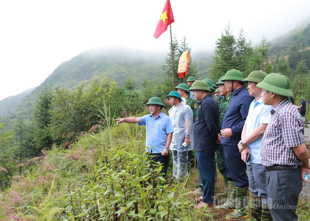 Bí thư Tỉnh uỷ Hầu A Lềnh kiểm tra điểm nguy cơ sạt lở cao phía trên thôn Má Lầu A.