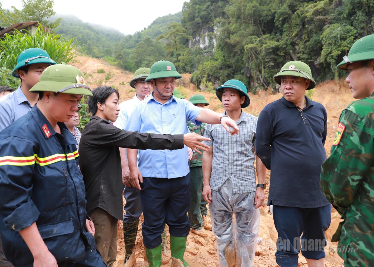 Đồng chí Bí thư Tỉnh uỷ yêu cầu các lực lượng: Công an, biên phòng, dân quân, thanh niên tiếp tục xác định vị trí có khả năng để nhanh chóng tìm kiếm các nạn nhân còn lại; huy động mọi phương tiện hiện có, nếu cần hỗ trợ thêm trang thiết bị thì đề xuất tỉnh. Song song tìm kiếm các nạn nhân phải đảm bảo phương án an toàn cho người và phương tiện; tính toán đường ra, hiệp đồng phối hợp, chỉ huy nhạy bén trong tình huống có thể xảy ra sạt lở trong lúc tìm kiếm.