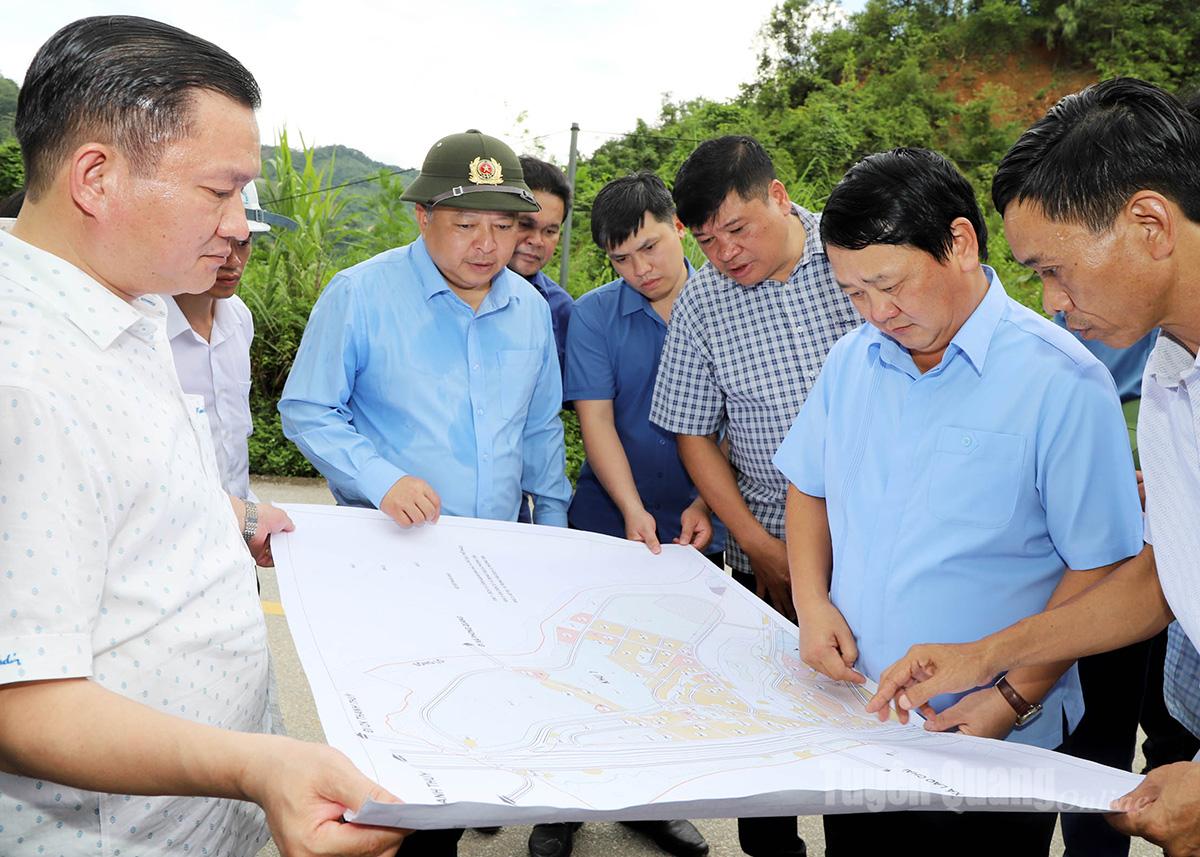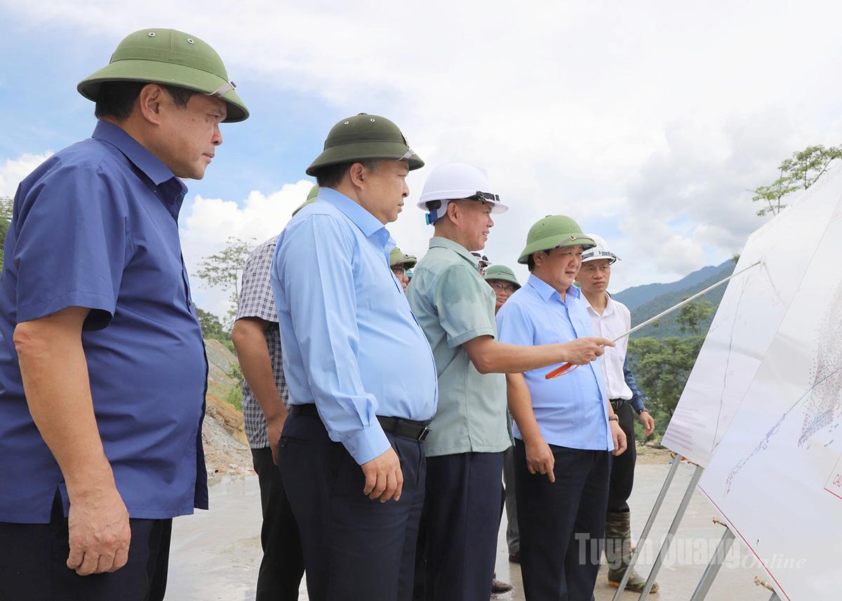 Bí thư Tỉnh ủy Hầu A Lềnh khảo sát các hạng mục phụ trợ, mực nước dâng sau khi Đập dâng nước hoàn thành.
