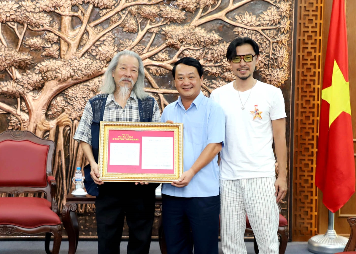 Cũng tại buổi tiếp nhận, Bí thư Tỉnh ủy Hầu A Lềnh cũng tiếp nhận bút tích ca khúc “Tuyên Quang đất mẹ” do Nhạc sĩ Bùi Minh Dũng trao tặng.