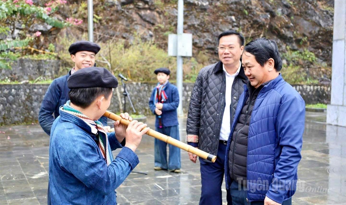 Bí thư Tỉnh ủy Hầu A Lềnh thăm, động viên cán bộ văn hóa thực hiện nhiệm vụ tại các điểm du lịch.