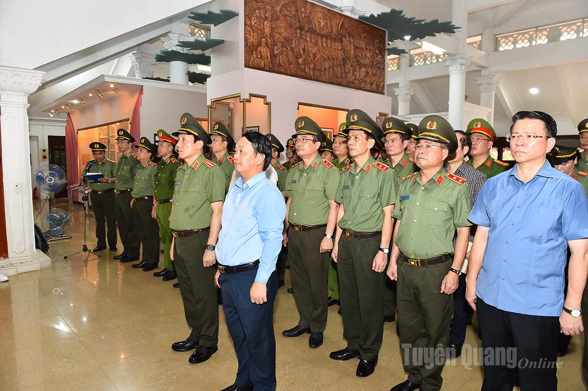 Đại tướng, Bộ trưởng Bộ Công an Lương Tam Quang và các đồng chí lãnh tỉnh dâng hương Chủ tịch Hồ Chí Minh tại Khu di tích Nha Công an Tuyên Quang.