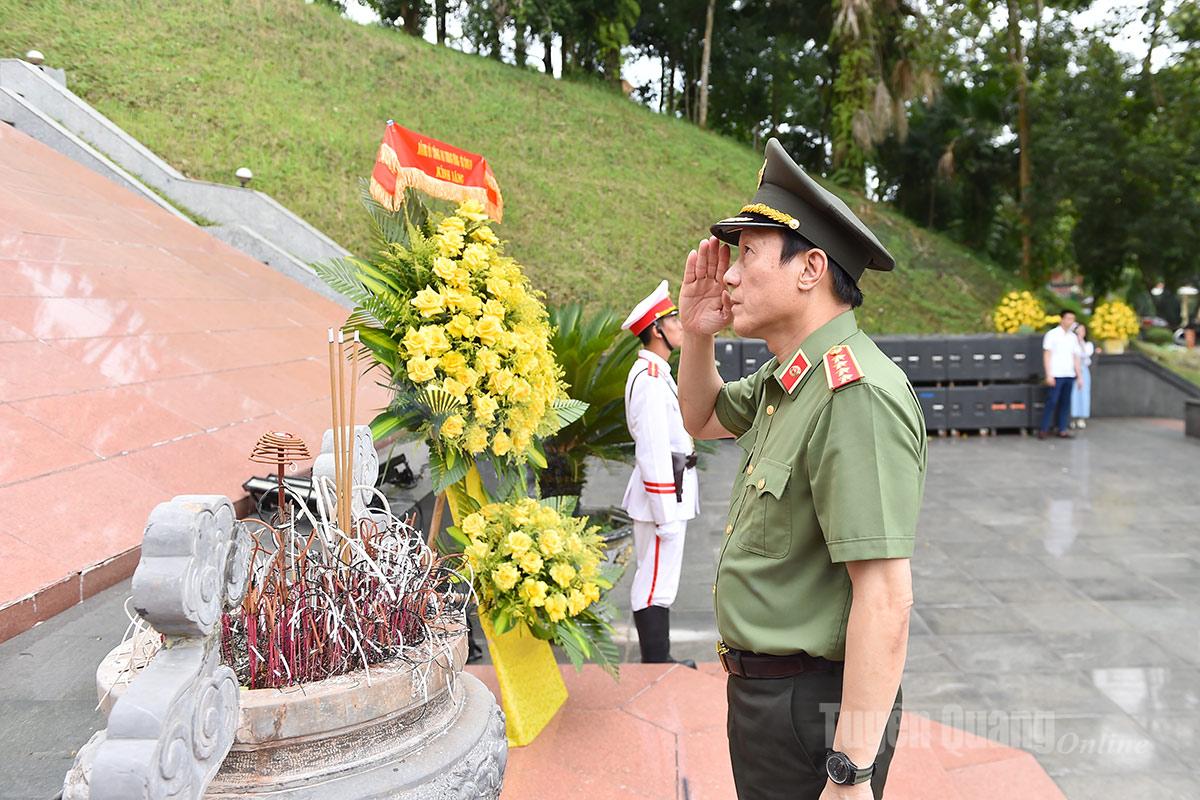 Trước Anh linh Chủ tịch Hồ Chí Minh và các Anh hùng liệt sĩ, các đồng chí lãnh đạo và đoàn công tác bày tỏ lòng thành kính, tri ân đối với các thế hệ cha anh đã cống hiến, hi sinh vì sự nghiệp xây dựng và bảo vệ Tổ quốc; hứa sẽ tiếp tục không ngừng học tập, làm theo tư tưởng, đạo đức, phong cách Hồ Chí Minh, thực hiện Sáu điều Bác Hồ dạy Công an nhân dân, luôn đoàn kết, thống nhất, nêu cao tinh thần “Phụng sự Tổ quốc, phục vụ nhân dân”. Đồng thời, phát huy truyền thống anh hùng vẻ vang, đổi mới toàn diện các mặt công tác, hoàn thành xuất sắc mọi nhiệm vụ mà Đảng, Nhà nước và nhân dân giao phó.
