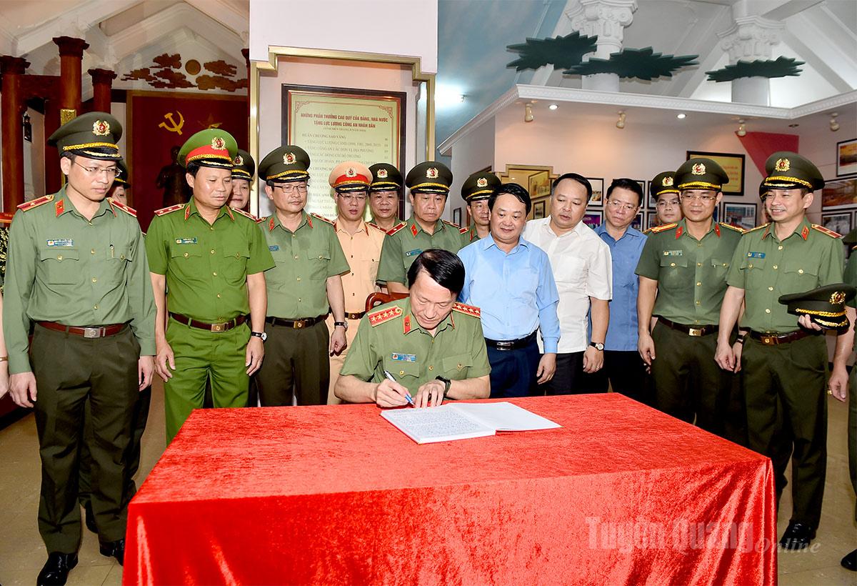 Đại tướng, Bộ trưởng Bộ Công an Lương Tam Quang viết lưu bút tại Bảo tàng Công an nhân dân.