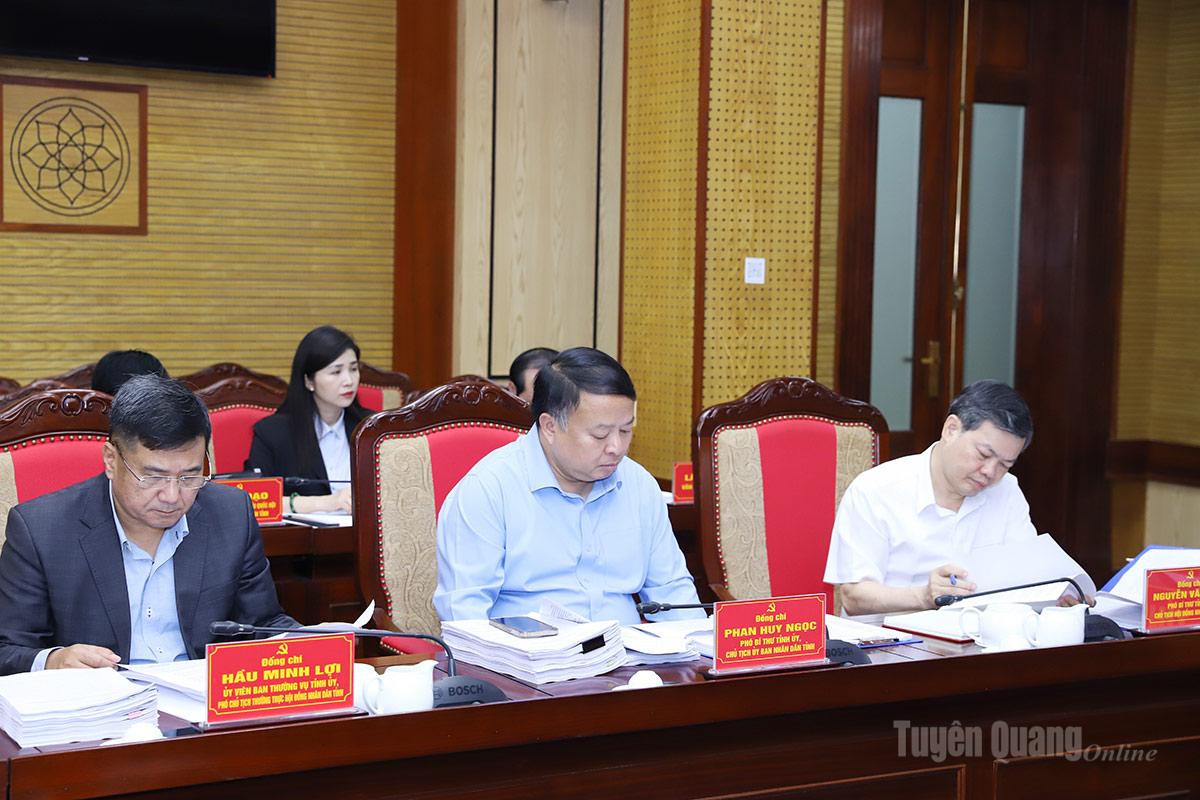 Phiên họp cũng đã xem xét, cho ý kiến đối với một số nội dung do Đảng ủy UBND tỉnh trình gồm: Tờ trình các nội dung tổ chức Hội nghị gặp mặt doanh nghiệp, nhà đầu tư ngoài tỉnh và doanh nghiệp có vốn đầu tư trực tiếp nước ngoài (FDI); xin chủ trương đầu tư dự án Trồng cây hoa nhài làm sản phẩm Trà Shan tuyết hoa nhài kết hợp du lịch tại xã Tân Tiến, tỉnh Tuyên Quang; xin chủ trương đầu tư xây dựng dự án Khu nghỉ dưỡng sinh thái cao cấp Meo Vac Elyscape; xin chủ trương đầu tư dự án Nhà máy sản xuất, gia công giày, dép xuất khẩu Nam Quang; xin chủ trương phân bổ, giao dự toán kinh phí ngân sách trung ương bổ sung có mục tiêu cho Sở Xây dựng để khắc phục hậu quả thiên tai trong lĩnh vực đường bộ; Nghị quyết của Ban Thường vụ Tỉnh uỷ về thu hút đầu tư giai đoạn 2026-2030 trên địa bàn tỉnh Tuyên Quang; kế hoạch triển khai thực hiện hiệu quả các chính sách hỗ trợ tạo việc làm và đẩy mạnh công tác đưa người lao động đi làm việc ở nước ngoài theo hợp đồng giai đoạn 2026-2030, trên địa bàn tỉnh Tuyên Quang; đề án tăng cường hợp tác toàn diện giữa tỉnh Tuyên Quang (Việt Nam) với tỉnh Vân Nam và Khu tự trị dân tộc Choang Quảng Tây (Trung Quốc) giai đoạn 2026 – 2030...