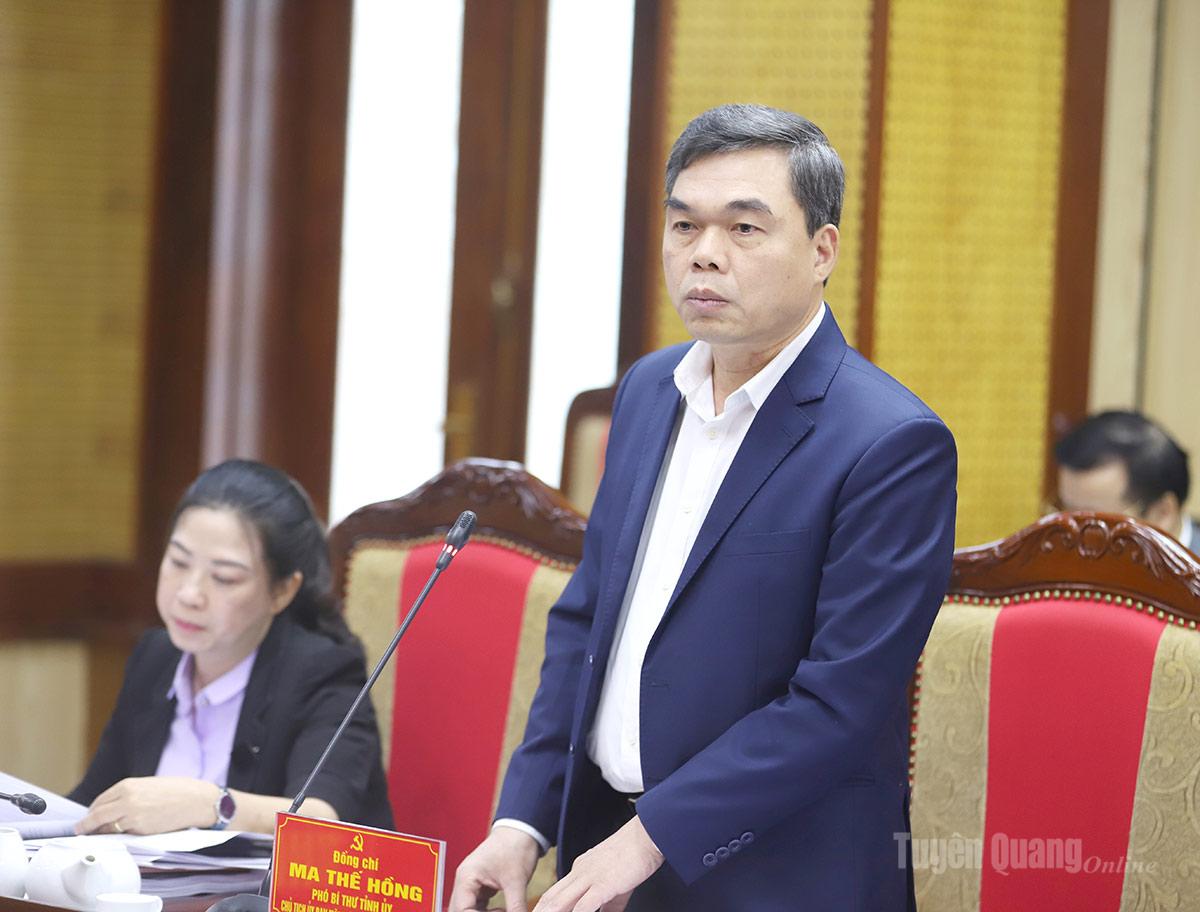 Phó Bí thư Tỉnh ủy, Chủ tịch Ủy ban MTTQ tỉnh Ma Thế Hồng phát biểu tại phiên họp.