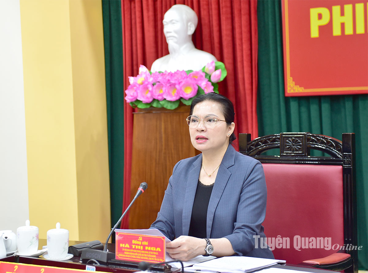 Đồng chí Bí thư Tỉnh ủy, Trưởng Đoàn ĐBQH tỉnh Hà Thị Nga chủ trì hội nghị.