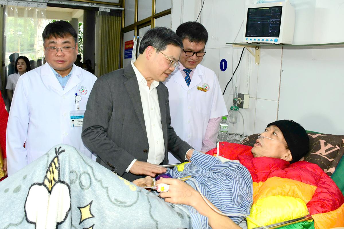 Chủ tịch HĐND tỉnh Nguyễn Văn Sơn thăm hỏi, tặng quà bệnh nhân đang điều trị tại Bệnh viện Đa khoa tỉnh.