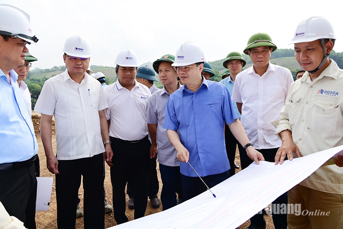 Chủ tịch UBND tỉnh Nguyễn Văn Sơn kiểm tra thi công dự án cao tốc tại địa bàn xã Bạch Xa.