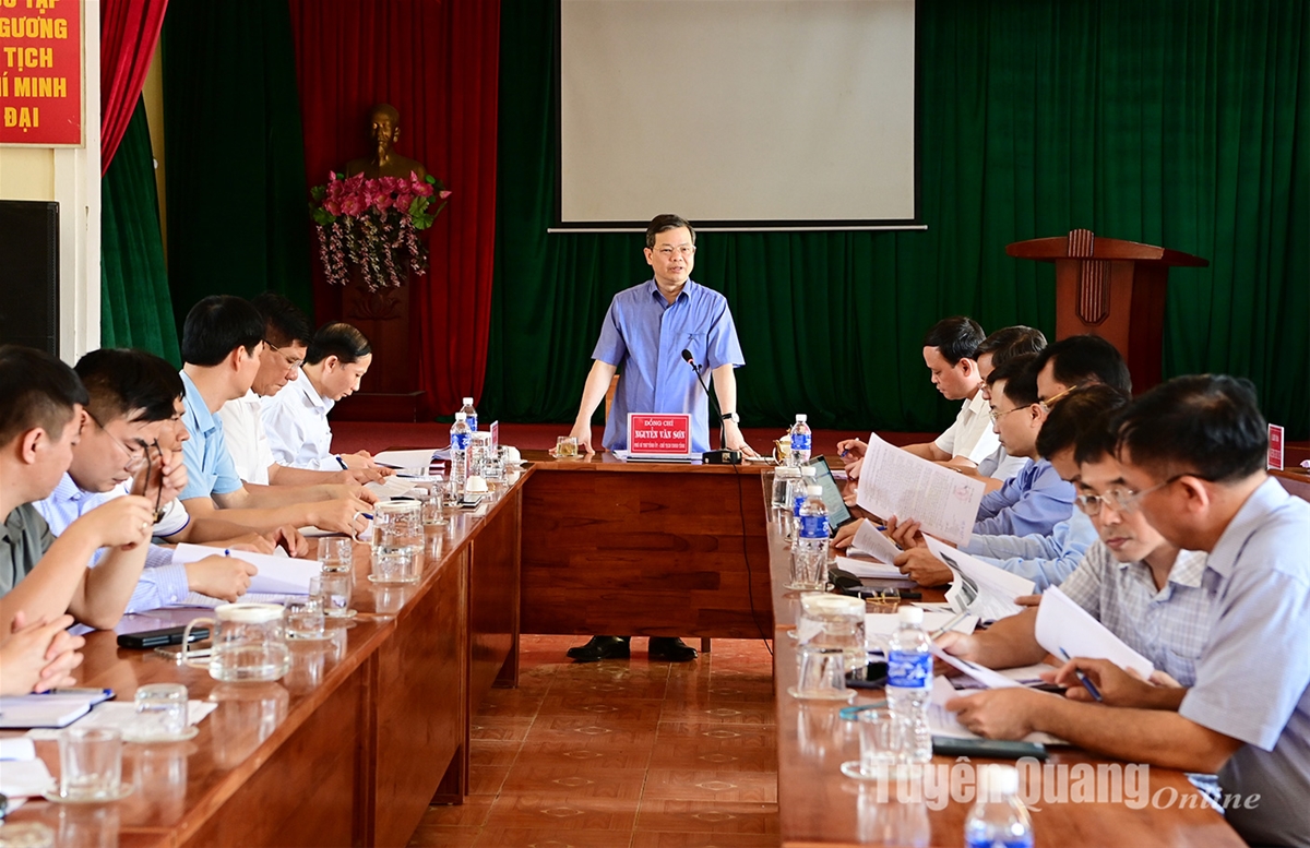 Chủ tịch UBND tỉnh Nguyễn Văn Sơn chủ trì buổi làm việc với các cơ quan, đơn vị, huyện Hàm Yên và nhà thầu thi công.