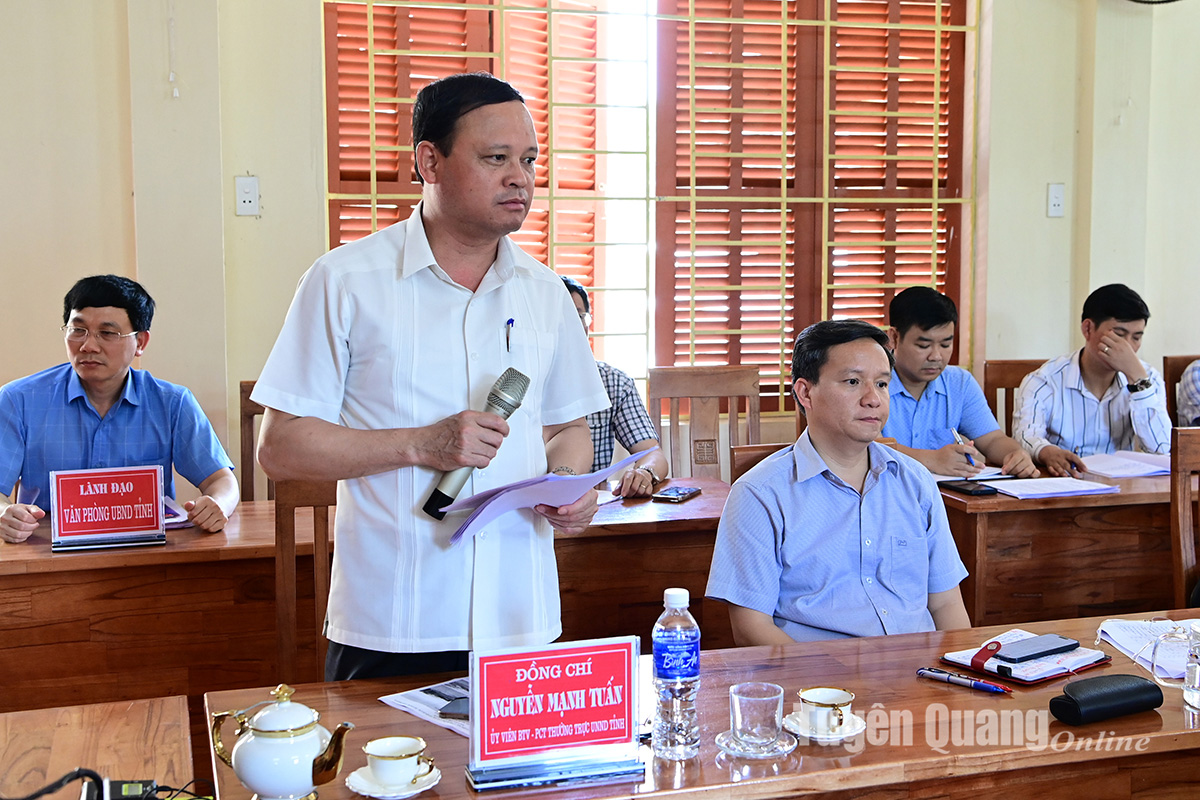 Đại diện các sở, ngành, huyện Hàm Yên, các nhà thầu thi công và các đơn vị liên quan phân tích, đề xuất các giải pháp để đẩy nhanh tiến độ dự án. Trọng tâm là hoàn thành việc giải phóng mặt bằng, phương án bố trí, vận chuyển đất đắp, bố trí phương tiện còn thiếu của các nhà thầu; việc bố trí tái định cư, ổn định đời sống nhân dân.
