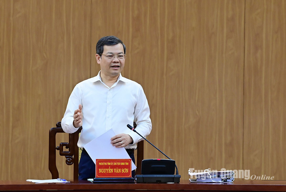 Chủ tịch UBND tỉnh Nguyễn Văn Sơn phát biểu tại phiên họp.