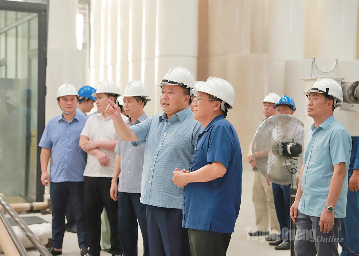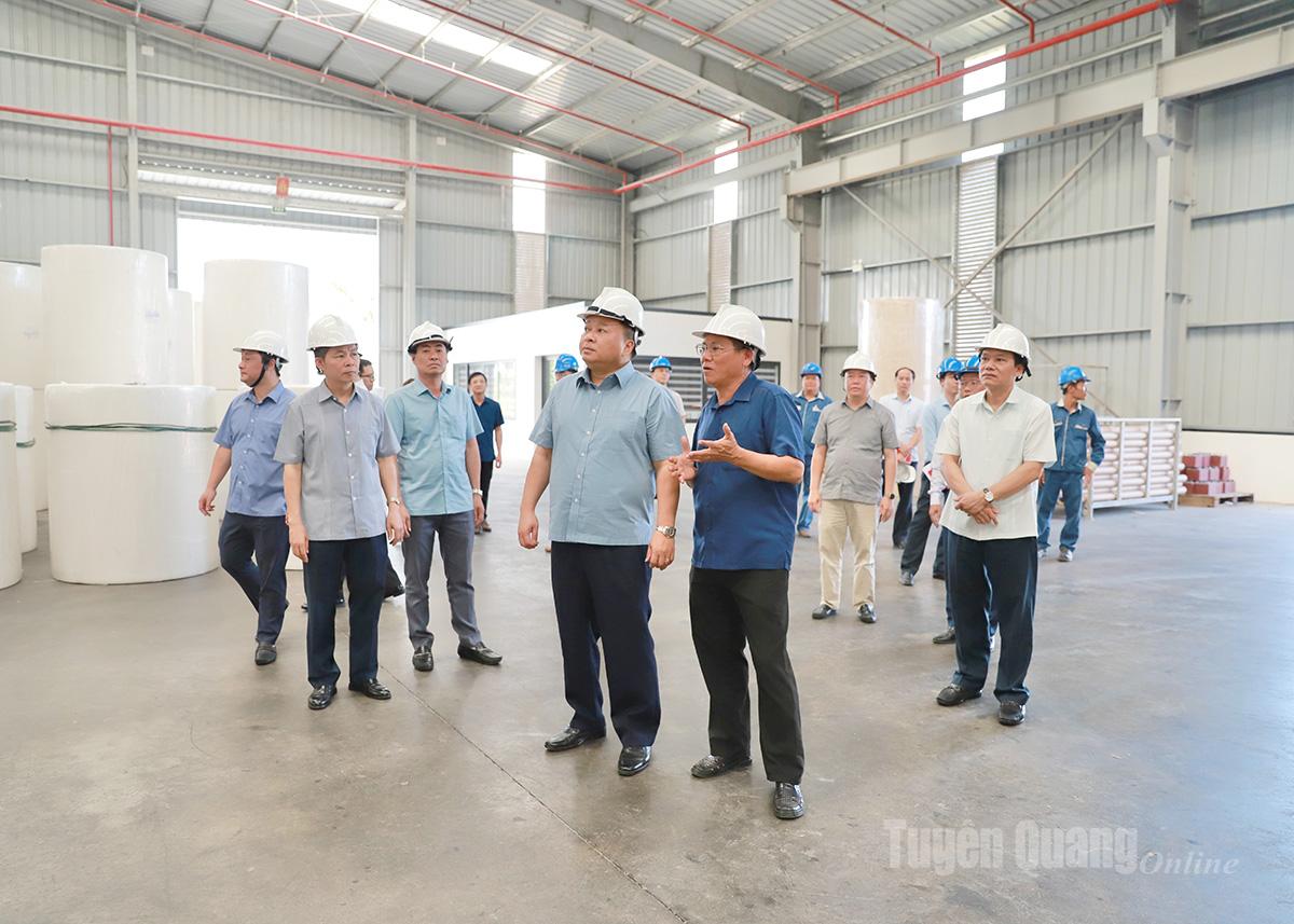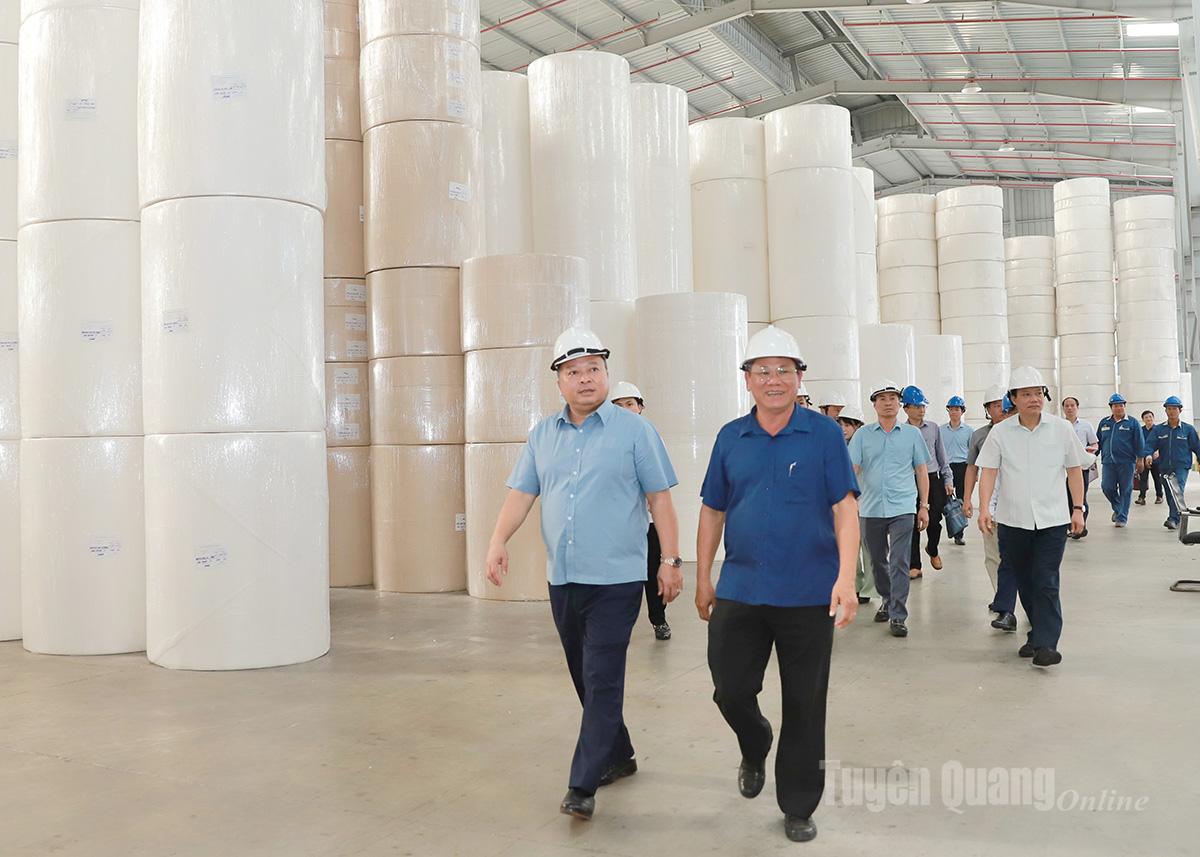 Chủ tịch UBND tỉnh Phan Huy Ngọc kiểm tra dây chuyền sản xuất của Nhà máy giấy của Công ty Hồng Phát.