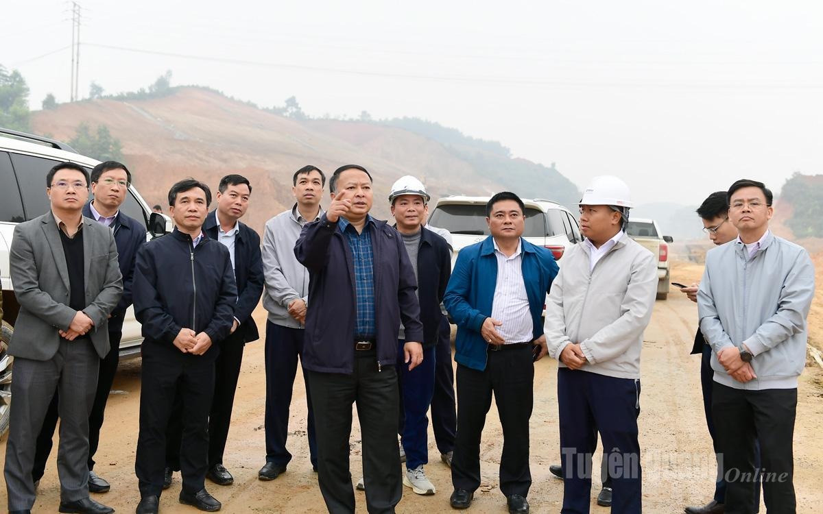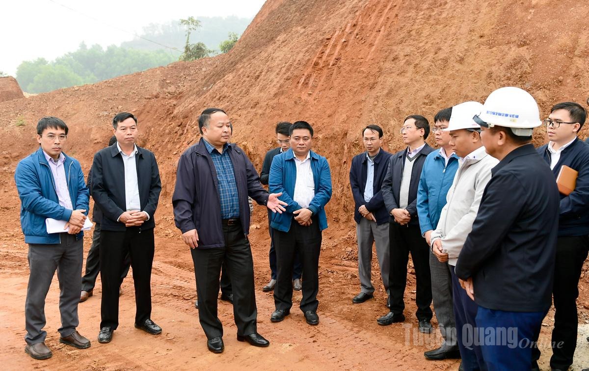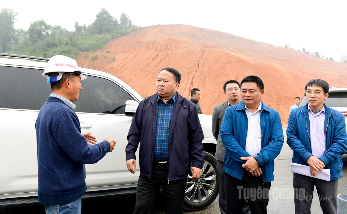 Đồng chí Chủ tịch UBND tỉnh Phan Huy Ngọc kiểm tra tiến độ cao tốc Tuyên Quang - Hà Giang (giai đoạn 1) đoạn qua xã Phù Lưu.