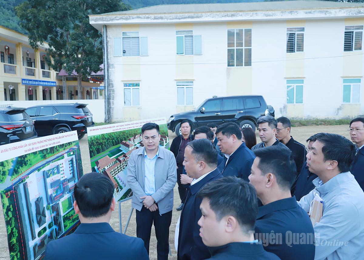 Chủ tịch UBND tỉnh Phan Huy Ngọc kiểm tra tiến độ triển khai dự án xây dựng Trường Phổ thông dân tộc nội trú liên cấp tại xã Minh Tân.