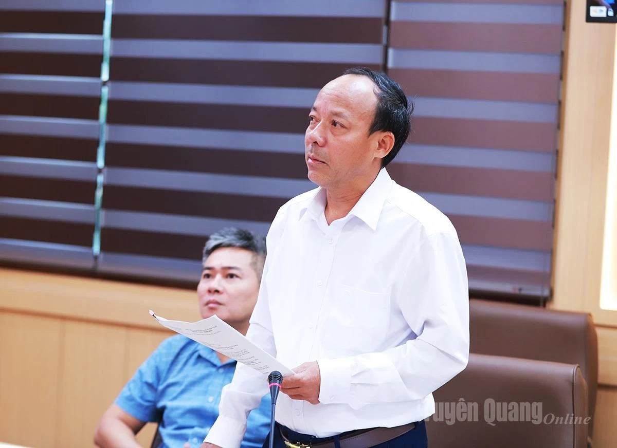Giám đốc Sở Tài chính Vân Đình Thảo đề xuất giải pháp về kinh phí thực hiện xử lý sạt lở Quốc lộ 2, đoạn qua phường Hà Giang 1.