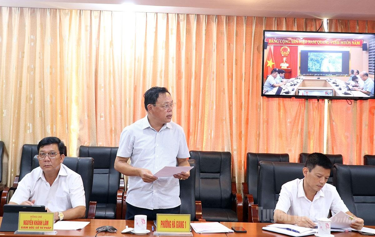 Đồng chí Hoàng Gia Long, Ủy viên Ban Thường vụ Tỉnh ủy, Phó Chủ tịch UBND tỉnh dự họp tại điểm cầu phường Hà Giang 1. Tham dự cuộc họp có lãnh đạo một số sở, ngành, phường Hà Giang 1, phường Hà Giang 2 và xã Vị Xuyên.