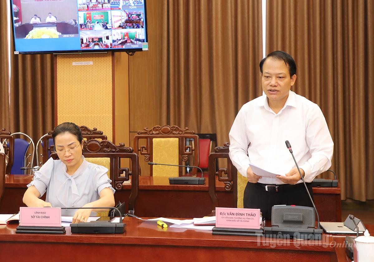 Đồng chí Vân Đình Thảo, Ủy viên Ban Thường vụ Tỉnh ủy, Giám đốc Sở Tài chính báo cáo tình hình thực hiện kế hoạch đầu tư công năm 2025 trên địa bàn tỉnh.