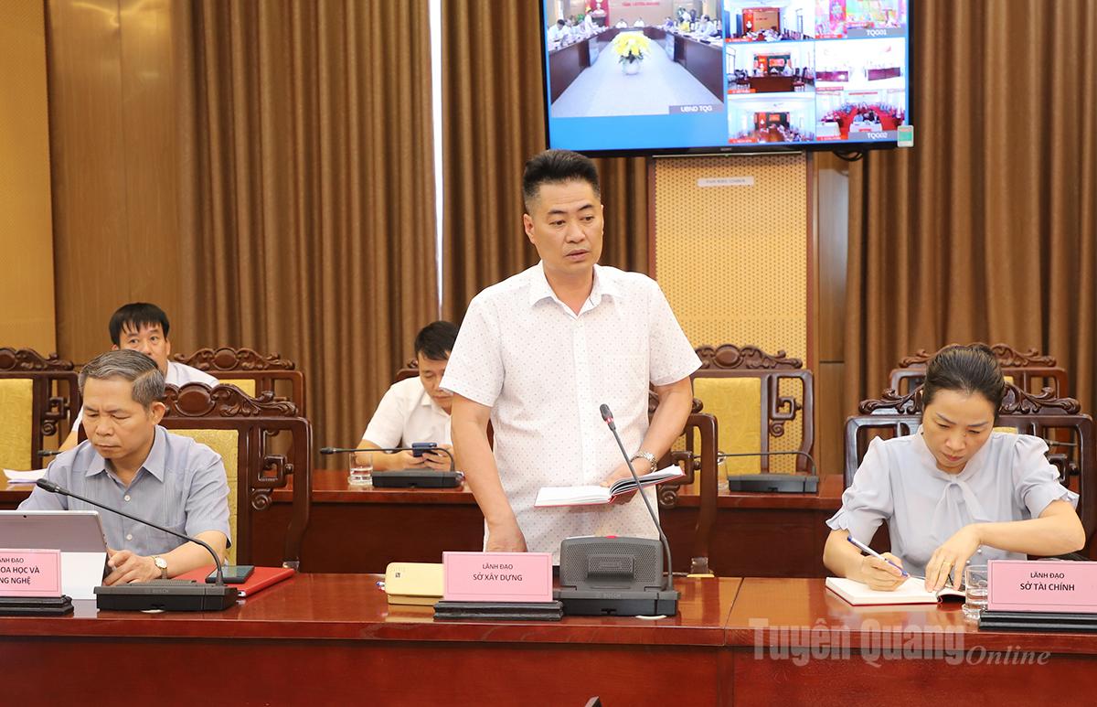 Giám đốc Sở Xây dựng Lê Thanh Sơn thảo luận tại hội nghị.