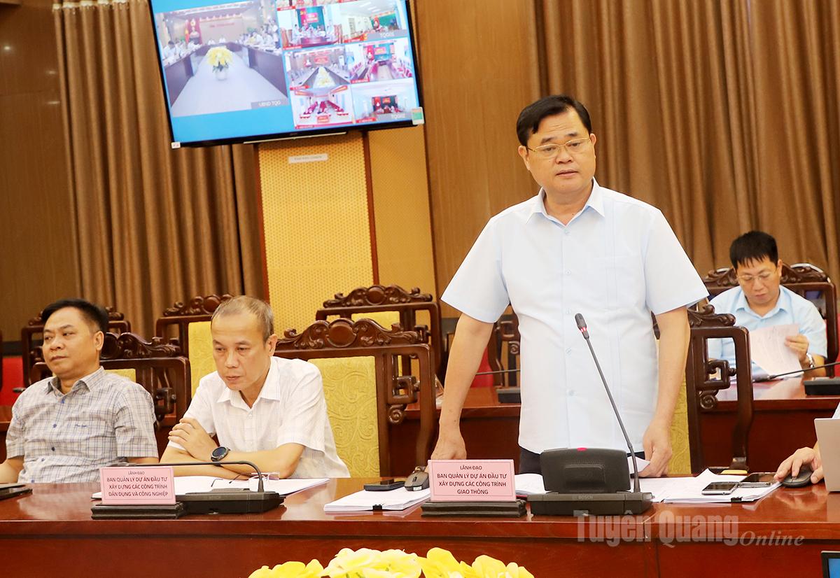 Giám đốc Ban Quản lý dự án đầu tư xây dựng các công trình giao thông tỉnh báo cáo tình hình thực hiện các dự án trên địa bàn.