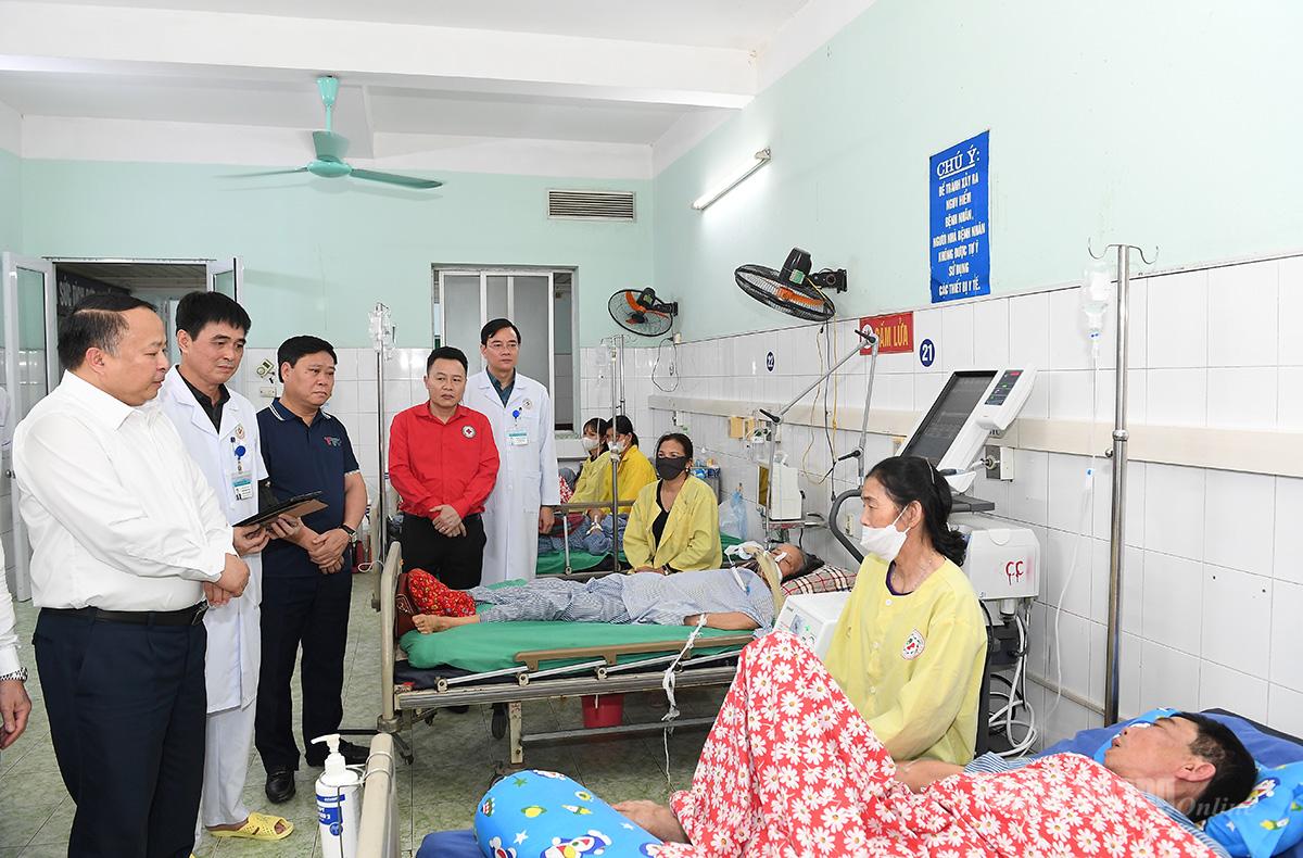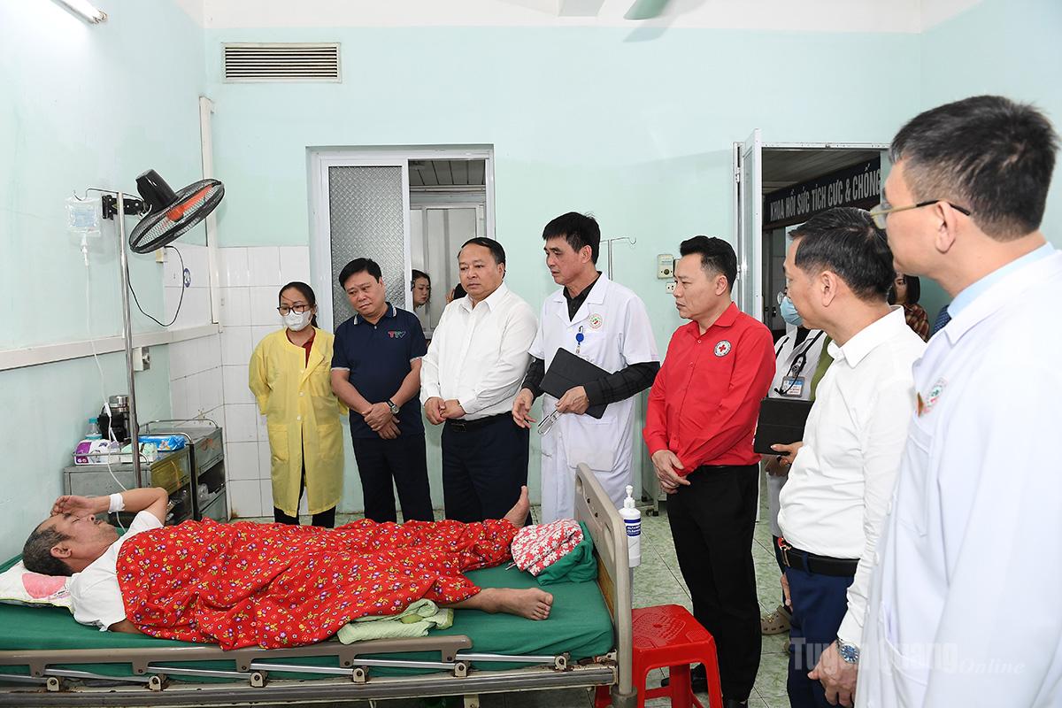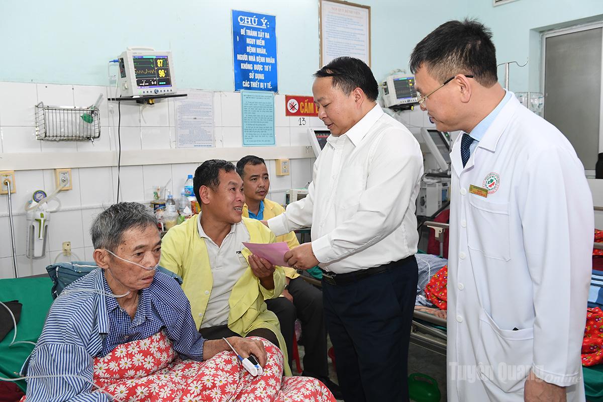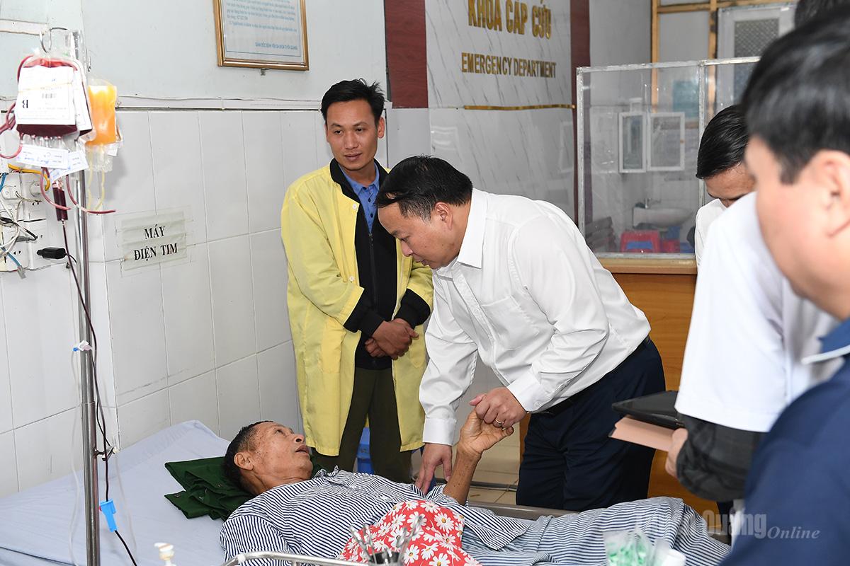 Chủ tịch UBND tỉnh Phan Huy Ngọc thăm hỏi, động viên bệnh nhân đang điều trị tại khoa Cấp cứu, Bệnh viện Đa khoa tỉnh.